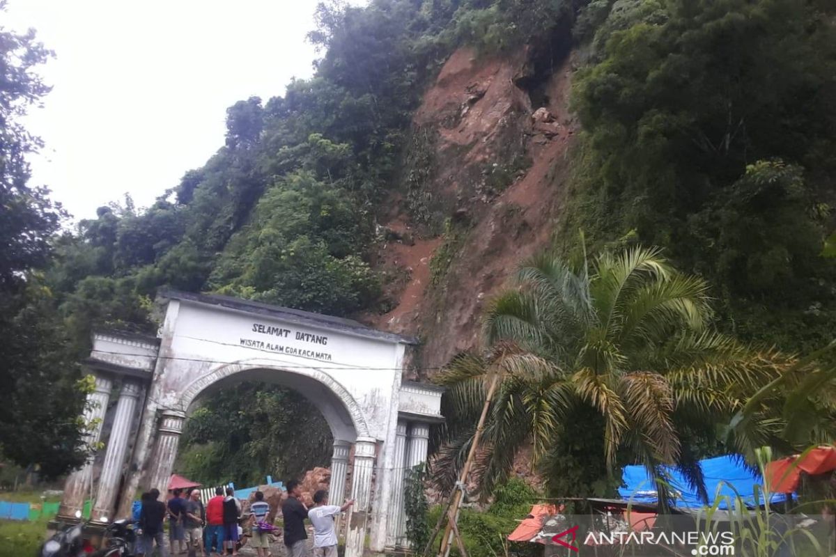 Lebong, Bengkulu (ANTARA) - Bencana alam tanah longsor menerjang kawasan wisata Goa Kacamata Kabupaten Lebong, Provinsi Bengkulu, pada Selasa sore (18/1) sekitar pukul 17.00 WIB, kendati demikian tidak memakan korban jiwa dan kerugian material.