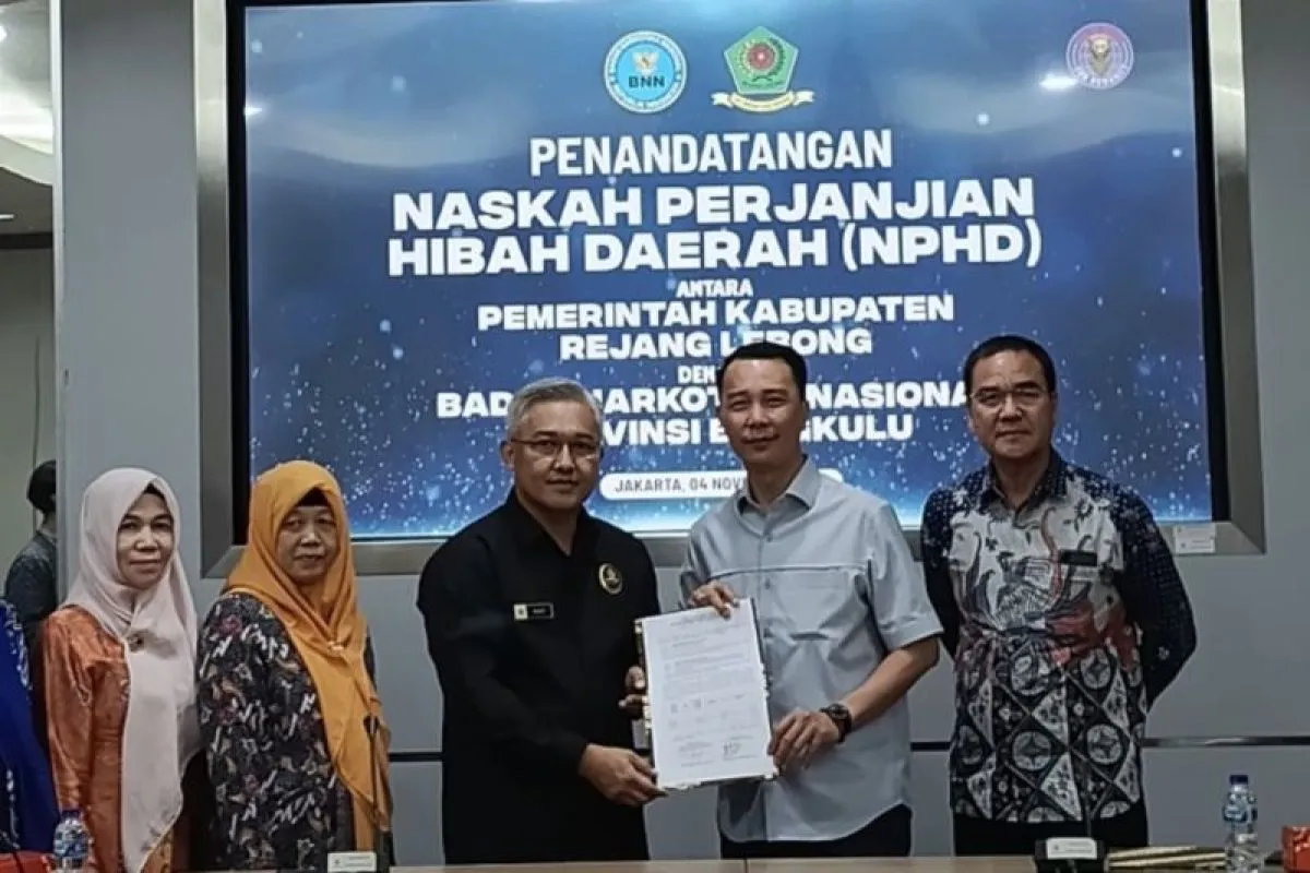 "Bupati Rejang Lebong dengan Badan Narkotika Nasional Provinsi atau BNNP Bengkulu, pada hari Selasa kemarin bertempat di Gedung Lemhannas, Jakarta, telah menandatangani Naskah Perjanjian Hibah Daerah atau NPHD lahan untuk Kantor BNNK Rejang Lebong," kata kepala Badan Kesatuan Bangsa dan Politik (Kesbangpol) Rejang Lebong, Pranoto Majid di Rejang Lebong, Kamis.