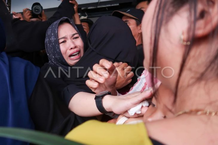 Keluarga menangis setelah mendengar saudaranya selamat dari tenggelamnya KMP Tunu Pratama Jaya di posko pengaduan di Pelabuhan Ketapang, Banyuwangi, Jawa Timur, Kamis (3/7/2025). Timsar gabungan berhasil menemukan 14 korban selamat dari total manifest sebanyak 53 penumpang dan 12 kru kapal. ANTARA FOTO/Budi Candra Setya/bar